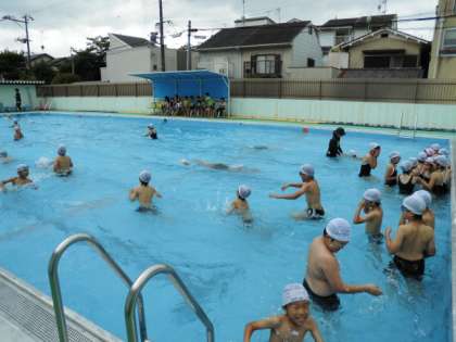 それでも,元気いっぱいの4年生は,大きな声で体操をしたり,泳いだりしていました。