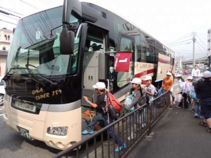 学校から三条通りまで歩き,そしてバスに乗車します。