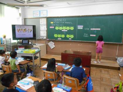 のこりはいくつになるか考えながら,式を立てたり,数図ブロックを操作しながら答えを求めたりしています。