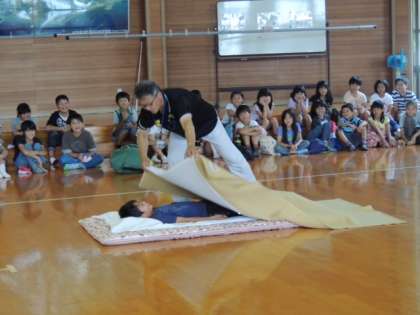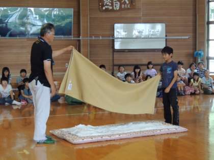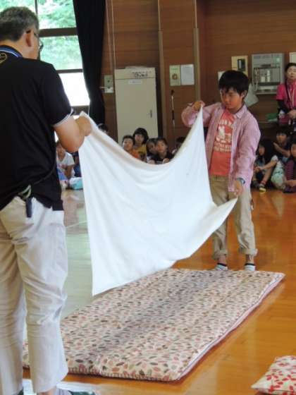 その後,毛布やシーツのたたみ方について教えていただきました。