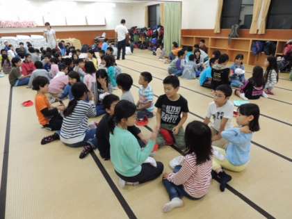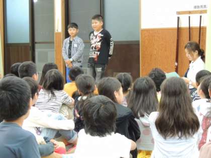 キャンプファイヤーが終わった後,90畳の部屋で反省会を行いました。
