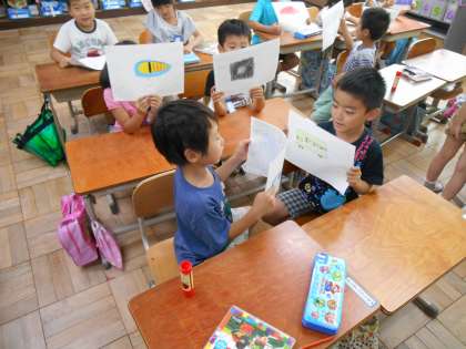 いきなり話すと緊張する子もいるので,今回は事前に発表メモを書いたり,宝物の絵を画用紙に描いたり,発表に準備をしてから臨みます。