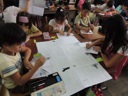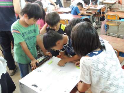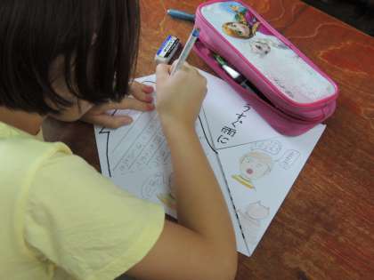 3年生では,国語の時間に「もうすぐ雨に」の教材を使って「わくわくカード」を作っています。