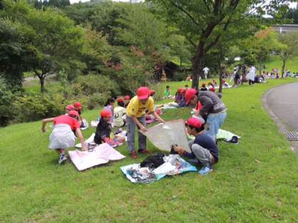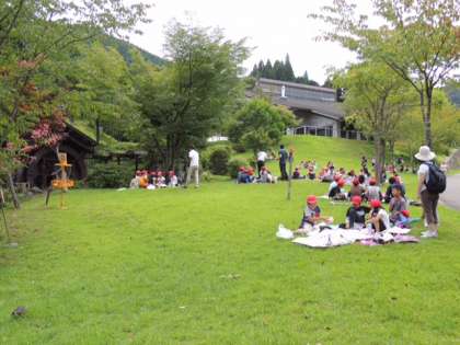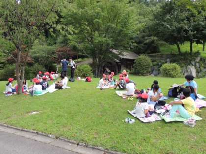 午前11時45分。芝生広場で昼食タイムです。