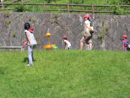 建物の外では,『フライングディスクゴルフ』で盛り上がっています。