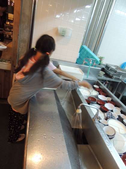 夕食を食べた後は後片付けです。