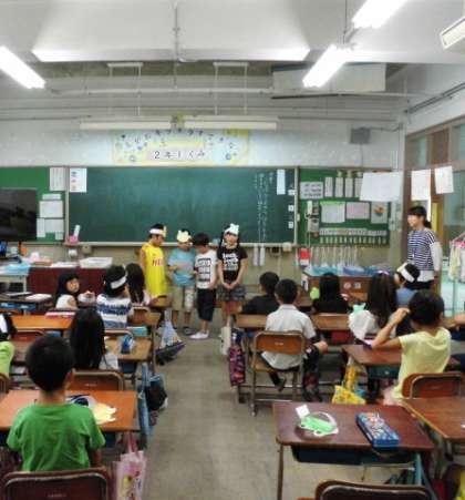 今日の学習のめあてを子どもたちがみんなで確かめます。