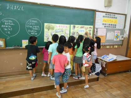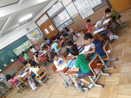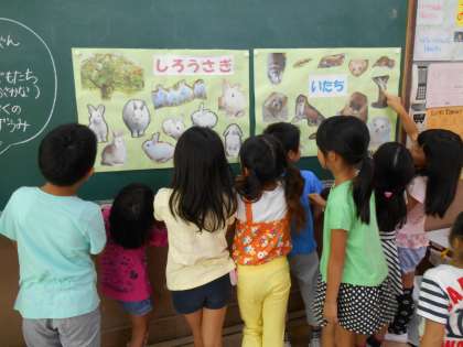 お話に出てくる動物の特徴をとらえながら,熱心にかく姿が見られました。
