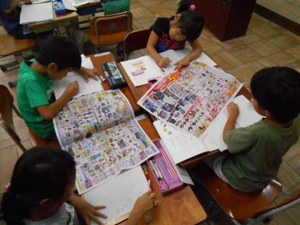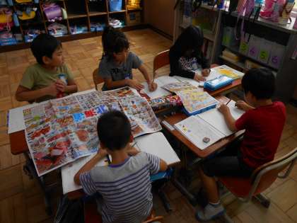 国語の時間にチラシやパンフレットを見て,「かたかなみつけ」をしました。