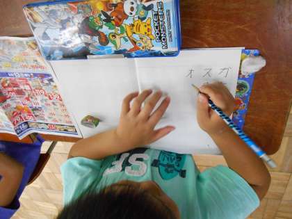 グループごとにかたかなを見つけては丸で印をつけ,ノートに書きこんでいきました。