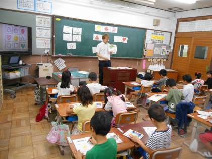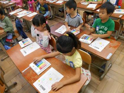 前回学習した色の言い方に加えて,今日は形をあらわす英語についても学習しました。