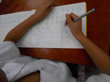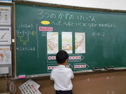 今日は「へって,へる」,3つの数の計算をしました。