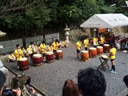 17日(土),本校和太鼓クラブが地域にある神社にて和太鼓を演奏しました。