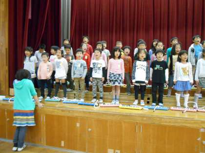 指揮を見ながら,あわせて歌ったり演奏したりできるように,明日も引き続き頑張って練習していきましょう。