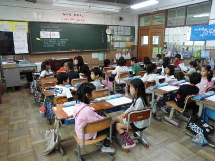1年生も,となりの友達と考え方を交流しています。