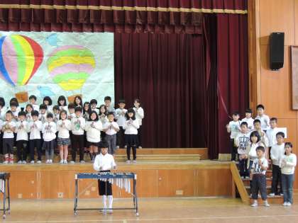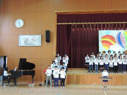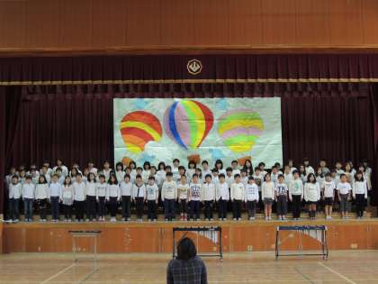 最後は,「気球にのってどこまでも」を夢いっぱい体育館に響かせます。