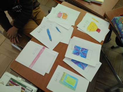お店屋さんごっこで使用する品物作りをしています。