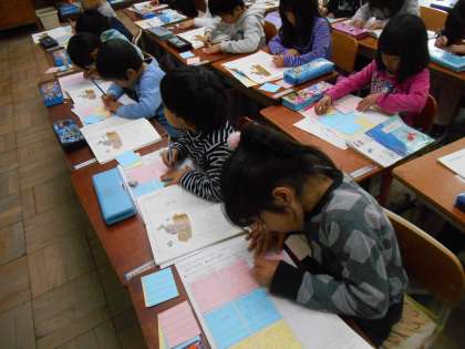 いつもより少し小さな色別カードだったので,少し苦戦している様子の子どもたちでした。