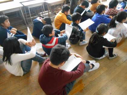 今日は少人数教室に集まって,学年集会を行いました。