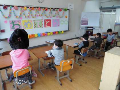 朝の会の健康観察では,初めての1年生も含めて,全員が元気な声で「はい!」とお返事することができました。