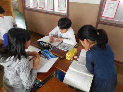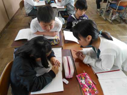 内容を受けて,音読の工夫を書き込み,班の友だちと読み合う姿も見られました。