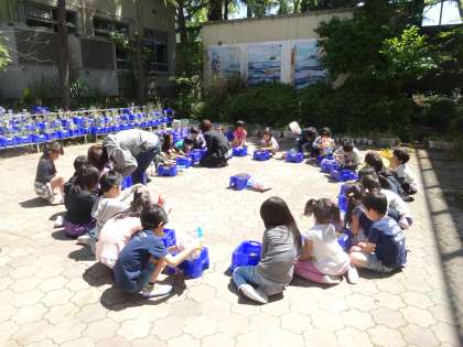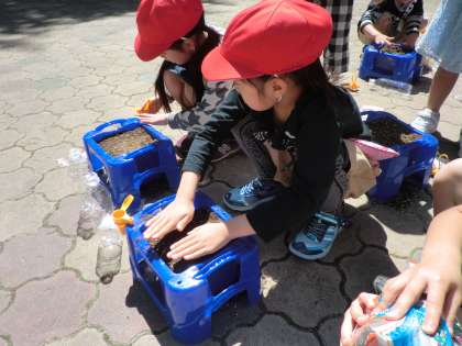 良い天気の中,子どもたちはワクワクしながら「あさがお」を植えました。