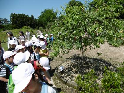 子どもたちは様々な植物を見て,「アーモンドってチョコに入ってるアーモンド!?」,「この高い木は,私たち何人分くらいだろう」と興味津々な様子でした。