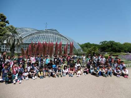 二年生は電車を乗り継いで,北山の植物園に行きました。