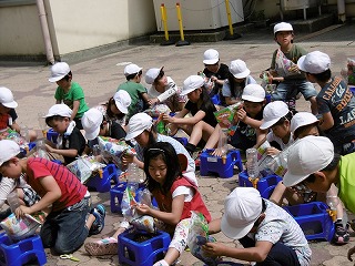 今日、2年生は5時間目にミニトマトの種を植えました。