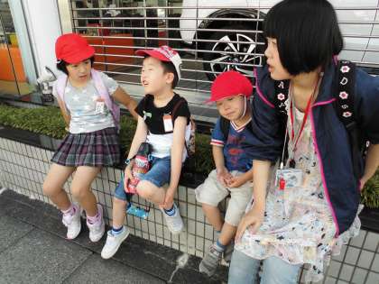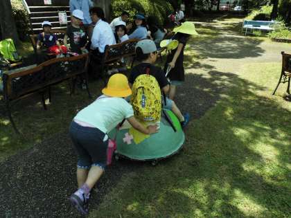 屋外のカメさんの乗り物で,他校のお友だちと一緒に遊ぶ姿も見られましたね。