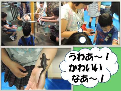 その後,展示室での体験をしたり生き物を実際に触ったりして楽しみました。
