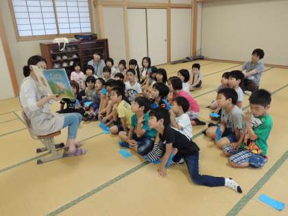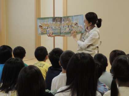 クローバーさんの感情豊かな語り口で,思わず子どもたちも覗き込んでいます。