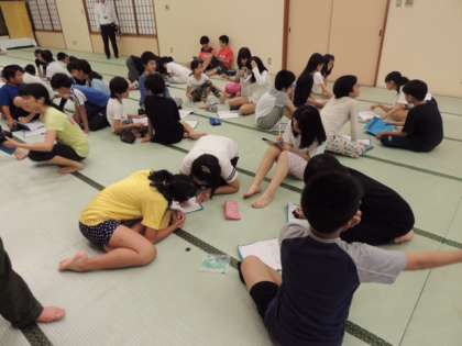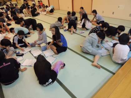 大広間では、今日の反省と明日に向けての抱負を話し合いました。