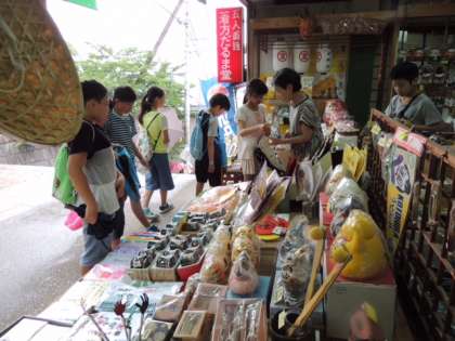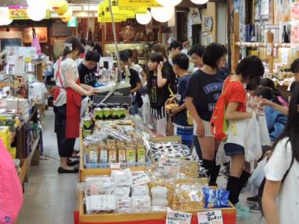 たくさんのお店がひしめく中を「どの店にしようかな?」と考えながら、お土産を買っていました。