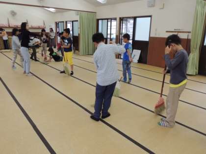 朝のつどいの後は,掃除です。