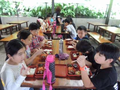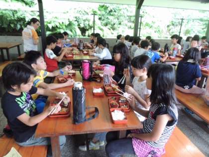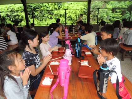 昼食です。昼食も野外炊事場横の食堂でいただきます。