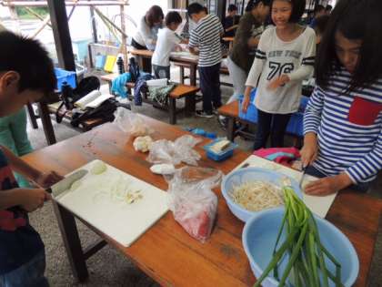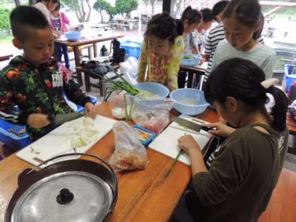 野外炊事。