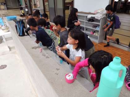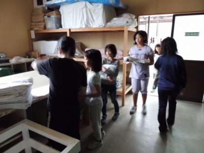 3日間使用したシーツを返却したり洗面をしたり、身支度をしています。