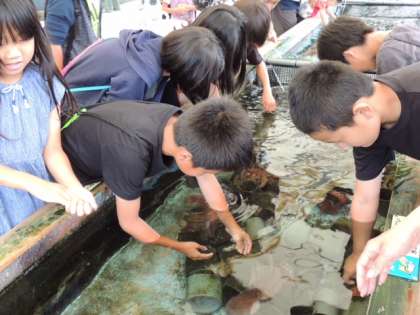 ヒトデや魚、エイなどを触ることができます。