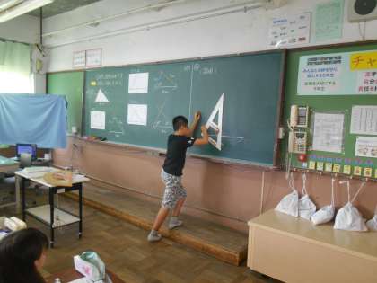 今日はコンパスや分度器,定規を使って,合同な三角形を作図しました。