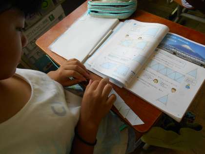 今日は合同な三角形をテープ状に並べ,三角形の内閣の性質について考えました。