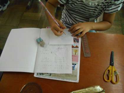 今日は三角形を切って,どんな三角形の内角の和も180°になることを確かめることができました。
