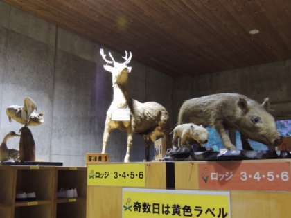 その上には、花背で生息している動物の剥製が飾ってあります。