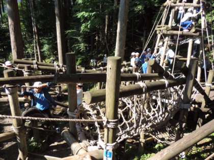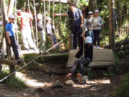 午後2時30分からは子どもたちが楽しみにしていた冒険の森でのアスレチックです。