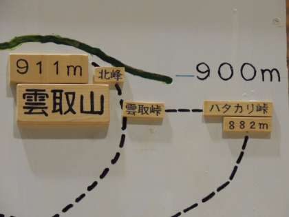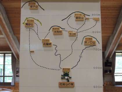 大文字山や花背山の家、雲取山の標高が書かれています。