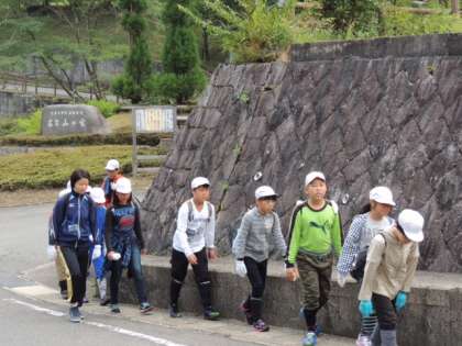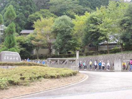 山の家を出発し、国道沿いに、登山口まで歩きます。