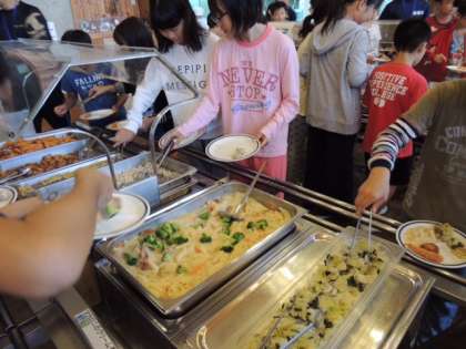 子どもたちの大好きなエビフライや焼売、シチューなどがありました。