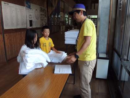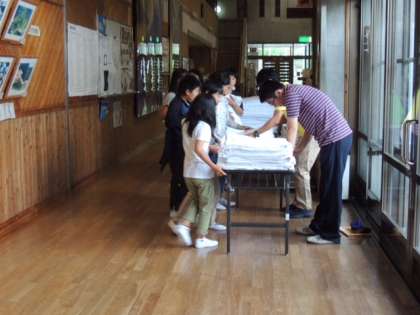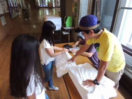 3泊の間使用したシーツをきれいにたたんで、班ごとに返却します。