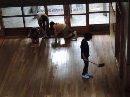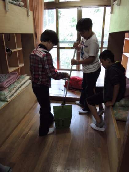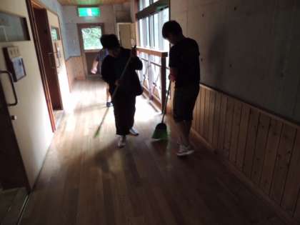 朝食後は、部屋やミーティングルーム等、使用した場所の掃除をします。