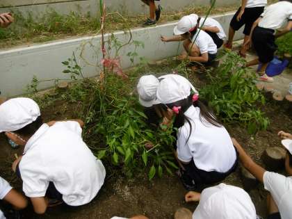 今日は二年生の畑の整地をし,野菜を収穫しました。